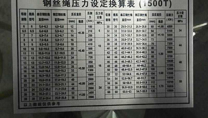 首先模具和鋁套型號(hào)是必須對(duì)應(yīng)的,比如6mm鋁套就用6#壓套機(jī)模具,8mm鋁套就用8#模具,而鋼絲繩的尺寸不一定是整數(shù),廠家配的模具正常都是偶數(shù)配,壓到?jīng)]對(duì)應(yīng)尺寸的鋼絲繩,這點(diǎn)不用擔(dān)心,模具都是有壓制范圍的,正常用1mm的上下范圍,比如15mm的鋼絲繩,可以用14mm或16mm的模具,總之最好的分別方法就是,不管鋼絲繩的尺寸是多少,找數(shù)值離得最近的模具就壓就可以了。還有一個(gè)重點(diǎn),剛剛說(shuō)的情況都是麻芯的鋼絲繩,而鋼芯的鋼絲繩正常都是比麻芯的鋼絲繩所用模具大一個(gè)型號(hào)。參數(shù)這樣的方法,客戶(hù)在使用鋼絲繩壓套機(jī)模具時(shí)就不會(huì)不知道如果選擇了。